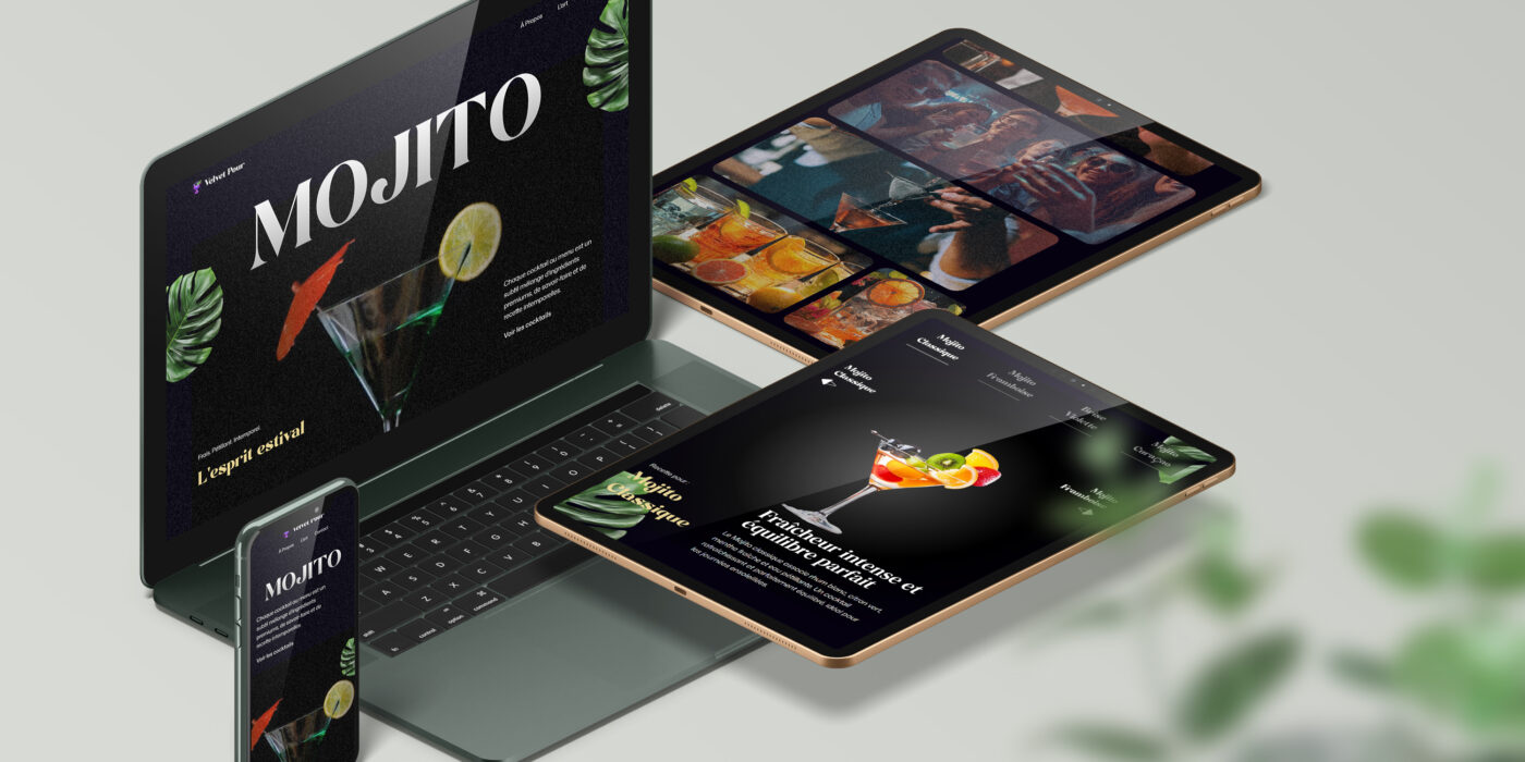 En imaginant une solution de présentation de menu interactif pour les bars, j’ai développé cette solution innovante et dynamique qui utilise l’emotion-driven design en donnant l’impression que le cocktail nous est servi en direct. Le projet peut être adapté pour ne proposer que le menu avec tout de même une magnifique interaction au scroll, mais dans ce showcase que j’ai publié, il y a également des sections pour présenter le savoir-faire, des informations supplémentaires sur les cocktails, ainsi qu’une section de contact avec les horaires d’ouvertures. Le projet doit être responsive pour le cas de déploiement via QRCode (scanner un QRCode permet aux clients d’accéder à ce menu interactif).