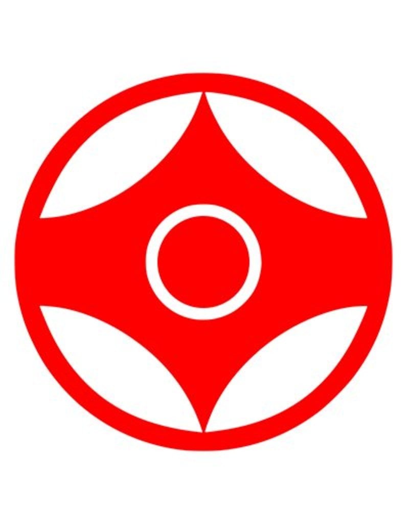 Le symbole principale : le Kanku dont les pointes sont les doigts et signifie la hauteur, les parties plus épaisses sont les poignets et signifie la puissance. Le cercle du centre est le point où l’on peut voir le ciel, et signifie la profondeur.